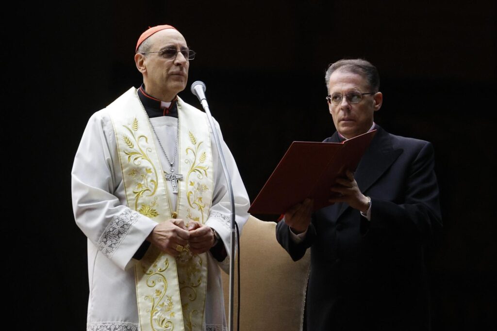 O prefeito do Dicastério para a Doutrina da Fé, o cardeal argentino Victor Manuel Fernández, durante a oração do Rosário pela saúde do papa Francisco, no Vaticano, no final de fevereiro (Foto: EFE/EPA/FABIO FRUSTACI)