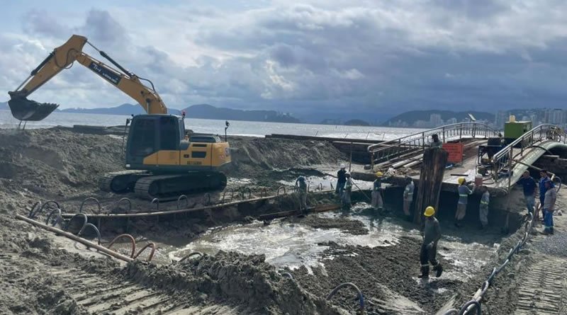 Após dias de maré alta, que comprometeram os serviços iniciais, foram retomadas as obras de prolongamento da passarela sobre o Canal 5, na faixa de areia, em mais uma etapa do pacote de intervenções da Prefeitura na orla. Os trabalhos estão concentrados no trecho sentido Ponta da Praia.