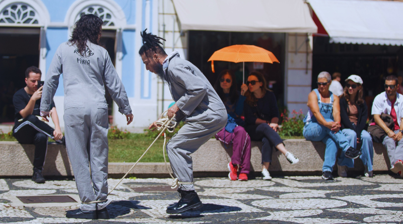 Às 10 horas, na Praça Mauá, o cuiabano Theatro Fúria encenará ‘Nó’Sapiens’, com direção de Péricles Anarckos, que performa com Carolina Argenta. A obra é inspirada no best-seller ‘Sapiens – Uma breve história da humanidade’, de Yuval Harari, e através de um cabo, remete às amarras que querem ditar os rumos de nossas vidas.
