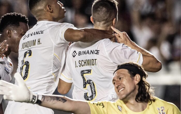 Foi o primeiro gol de João Schmidt pelo Santos (Crédito: Raul Baretta/Santos FC)