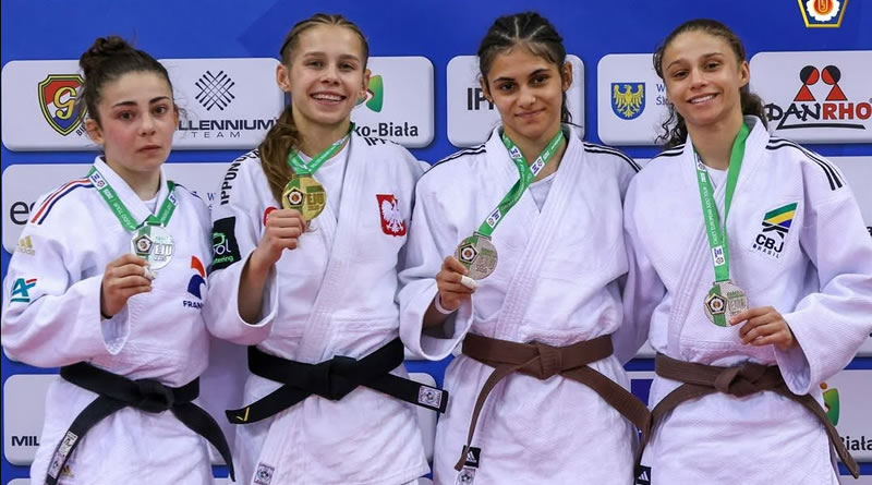 A revelação do judô santista Giovana Imhof (Gota de Leite/Fupes) voltou a brilhar no exterior. A atleta de 15 anos, que compete na categoria cadete (até 18 anos) – 44kg, conquistou a medalha de bronze em etapa do circuito europeu disputada em Bielsko-Biala, na Polônia, no último sábado (17).