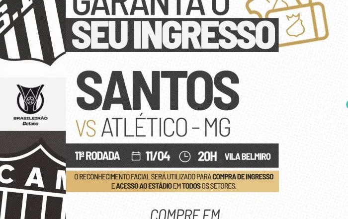 O Santos abriu a venda de ingressos para o jogo contra o Atlético Mineiro neste sábado (11), às 20 horas, na Vila Belmiro, pela 11ª rodada do Brasileirão. A Lei Estadual nº 18.159/2025, de São Paulo, garante gratuidade em eventos esportivos para crianças de até 2 anos incompletos, que devem permanecer no colo do responsável. Não há gratuidade para idosos ou pessoas com deficiência.