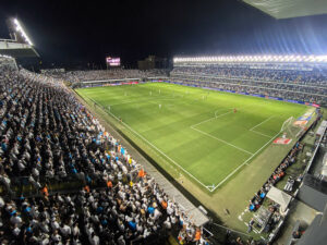 Vila Belmiro durante duelo contra o Palmeiras (Crédito: Reinaldo Campos/Santos FC)