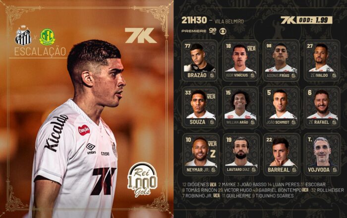 Já no ataque aparece a única alteração. Lautaro Díaz inicia entre os titulares e forma o setor ofensivo ao lado de Barreal e Neymar.