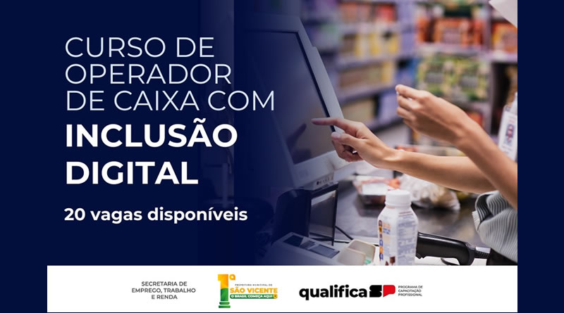 Fomentando o aprendizado e a capacitação, a Secretaria Municipal de Emprego, Trabalho e Renda (Setre), em parceria com a Secretaria de Desenvolvimento Econômico (SDE) do Governo do Estado de São Paulo, através do Programa de Capacitação Profissional Qualifica SP, oferece 20 vagas para o curso de operador de caixa com inclusão digital.