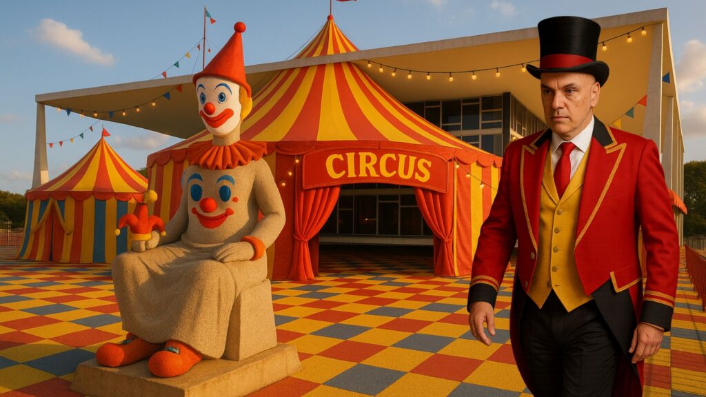 Desrespeitável público! Sejam muito bem-vindos! É com um inegável prazer, um prazer sádico, que eu, Alexandre de Moraes, internacionalmente conhecido como Big Alex, apresento a vocês o circo do meu tribunal, o Grande Circo STF. O espetáculo mais deplorável da Terra! Ajeitem-se em suas cadeiras que o show de horrores já vai começar