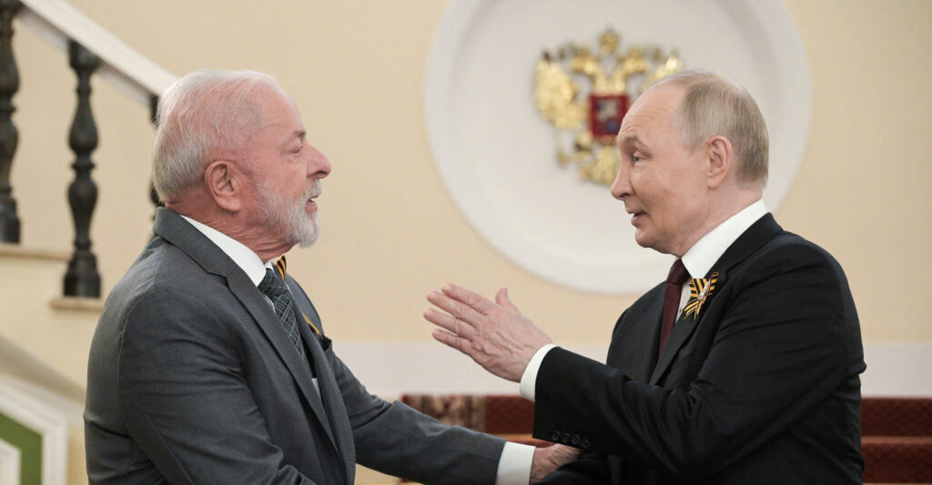 Moro fez menção à proximidade com a qual os governantes do Brasil e Rússia se trataram durante a visita. “Lula, não satisfeito em ir a Moscou para aplaudir as tropas russas que invadiram a Ucrânia, abraçou calorosamente Vladimir Putin por sua própria iniciativa.”