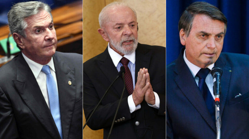 Ex-presidente Fernando Collor de Mello (à esq.), presidente Luiz Inácio Lula da Silva e o ex-presidente Jair Bolsonaro (Foto: Jefferson Rudy/Agência Senado / EFE/EPA/Franck Robichon / Valter Campanato/Agência Brasil)