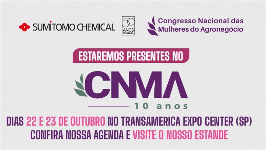 A Sumitomo Chemical está presente na 10ª edição do Congresso Nacional das Mulheres do Agronegócio (CNMA) com a iniciativa “Diálogos Mulheres do Agro”, que acontece nos dias 22 e 23 de outubro, no Transamérica Expo Center, em São Paulo (SP). A companhia japonesa, com mais de 110 anos de atuação global e referência em pesquisa e desenvolvimento de soluções para a agricultura e a pecuária, comemora em 2025 meio século de atividades no Brasil. Ela também é patrocinadora do CNMA.
