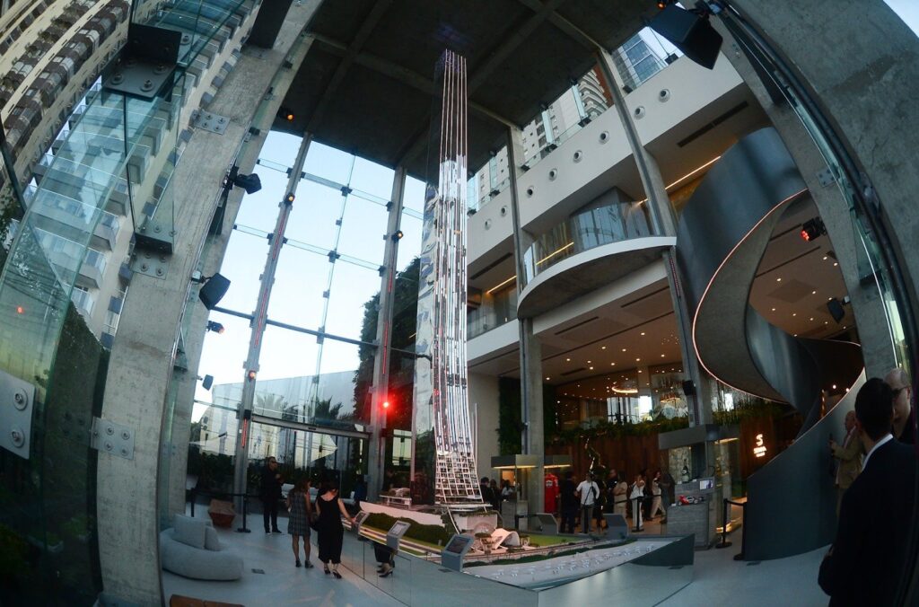 No terreno onde iniciarão as obras do Senna Tower, na altura da rua 4440 da Avenida Atlântica, foi construído um espaço para receber a imprensa e os convidados. Os jornalistas puderam acessar o local primeiro, para realizar um tour guiado, acompanhados de Stéphane Domeneghini, engenheira responsável do Senna Tower e diretora-executiva da Talls Solutions. Uma maquete de 14 metros de altura — correspondente à altura de um prédio de quatro andares — ocupou um lugar de destaque. O “filhote” do Senna Tower demorou 18 meses para ser montado e foi banhado por um show de luzes.