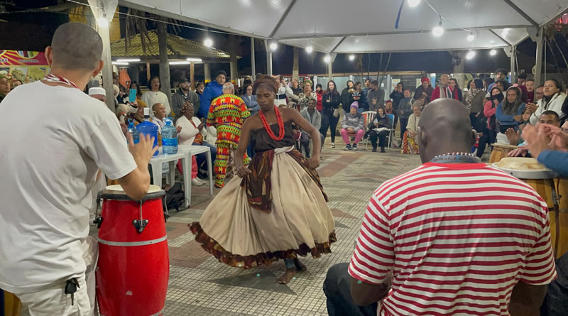 Um dos momentos mais marcantes da noite foi protagonizado por Makota Bárbara Conceição, conhecida na tradição como Matambelewa, do Inzo Unsaba Zambiri Mutakalambo (IUZM), que dançou com firmeza, axé e ancestralidade durante a celebração, representando a força das tradições de matriz Bantu e emocionando os presentes com sua presença espiritual e simbólica.