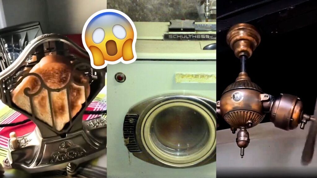 Em 1925, a “secadora” de roupas era, na verdade, um varal retrátil de madeira, fixado à parede. Quando não estava em uso, ele se dobrava e ficava compacta, parecendo mais um suporte de tocha medieval do que um utensílio doméstico. Na prática, ele funcionava como um varal interno: você estendia as roupas molhadas ali e contava com o tempo — e a paciência — para que secassem naturalmente. Nada de botão liga/desliga, nada de ciclos programados.